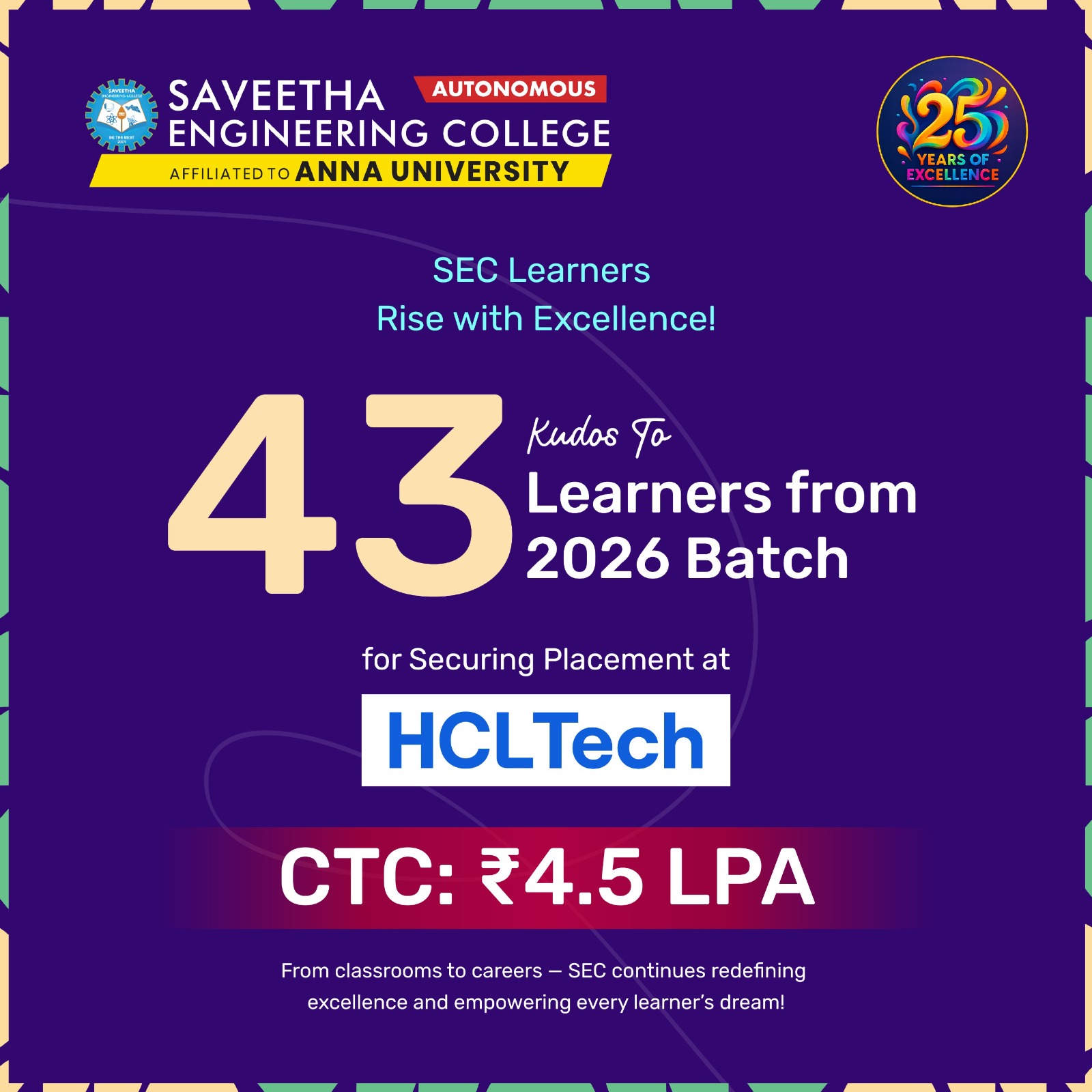 🎉 Big applause to 43 Learners from the 2026 Batch for securing placement at HCL Tech.