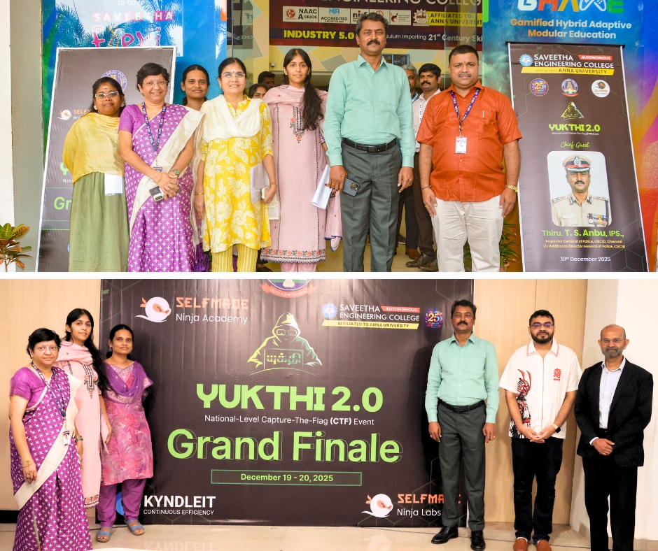 💫 Yukthi 2.0 Cyber Security Hackathon, a National-Level Capture-The-Flag (CTF) event , received an overwhelming response with 2,353 participants from top institutions across India. From this pool, 198 finalists have earned the opportunity to compete in the Grand Finale scheduled from Dec. 19th–20,th 2025, at Saveetha Engineering College (SEC), Autonomous.