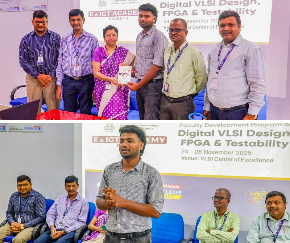 🎉 Saveetha Engineering College (Autonomous), in proud collaboration with E&ICT Academy, Meity, GoI, inaugurated a 5-Day Faculty Development Program on “Digital VLSI Design, FPGA & Testability” through ICT Academy as Implementation partner on 24th Nov 2025 at our state-of-the-art “VLSI Centre of Excellence” — becoming the First Engineering Institution in Tamil Nadu to host such an advanced industry-aligned FDP on ESDM Domain. This program will continue till 28th Nov. 2025.