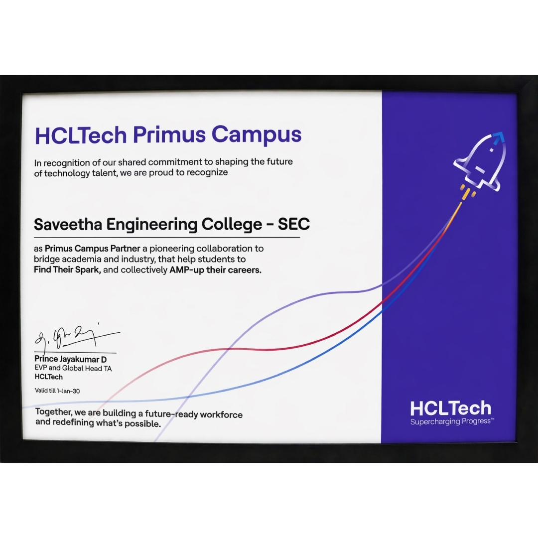 ✨ We are delighted to be recognised as an “HCLTech Primus Campus Partner” — a prestigious recognition that reinforces our commitment to shaping future-ready technology talent.