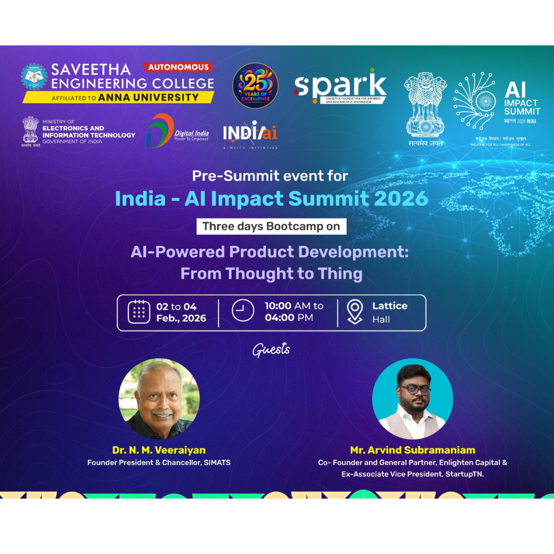 🎉 Saveetha Engineering College (Autonomous) proudly hosts a 3-Day Bootcamp on “AI-Powered Product Development: From