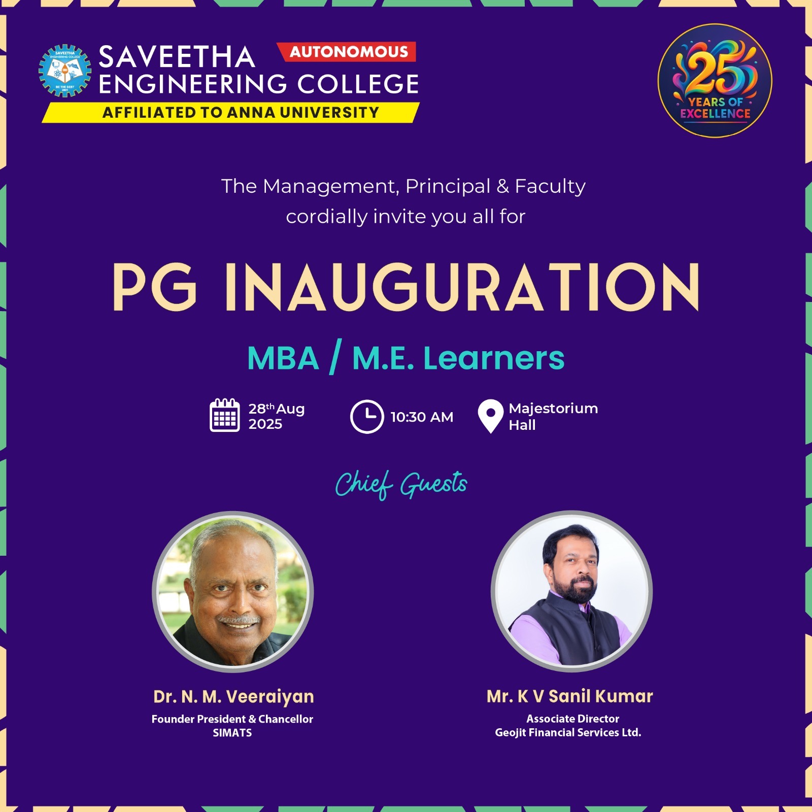 Chief Guests:💫 Dr. N. M. Veeraiyan, Founder President & Chancellor, SIMATS💫 Mr. K V Sanil