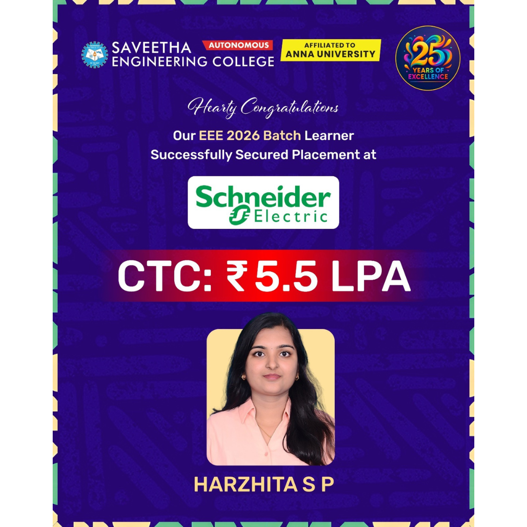 🎉 Hearty congratulations to our EEE 2025 Batch Learner – Harzhita S P for securing