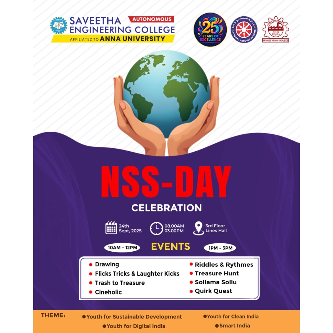 🎉 Saveetha Engineering College proudly celebrates “NSS Day” on Sept 24th, 2025! Join us for