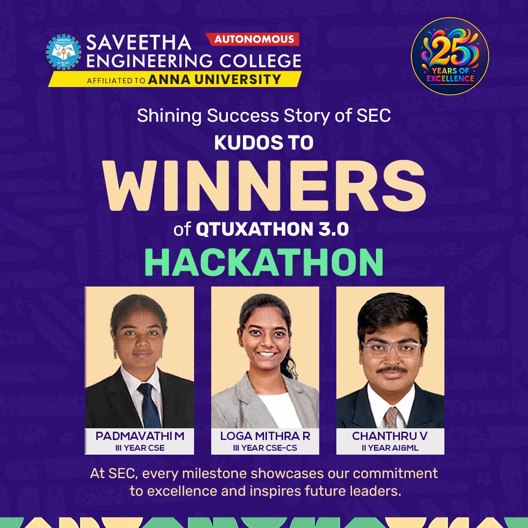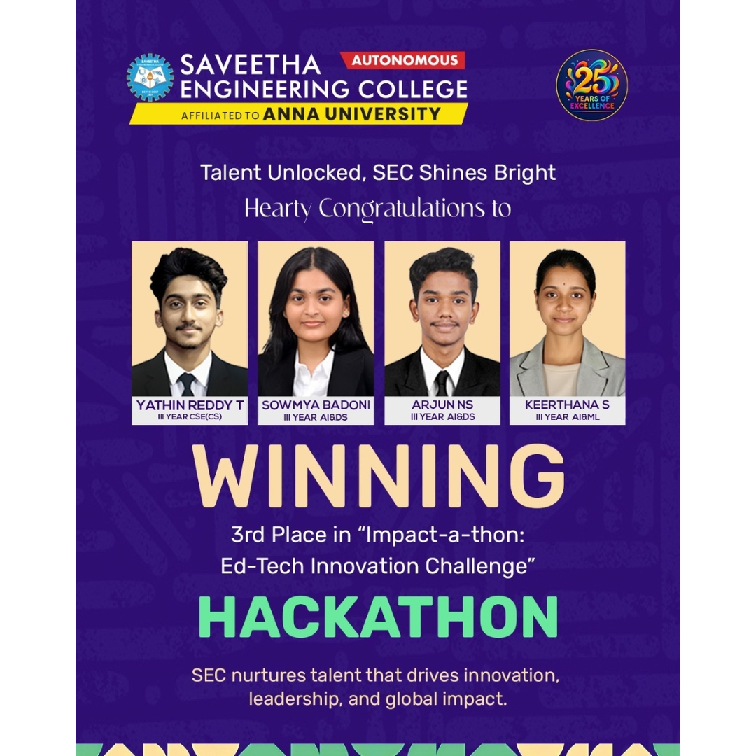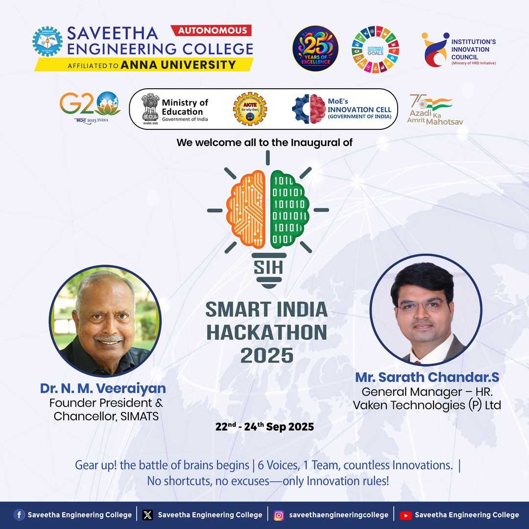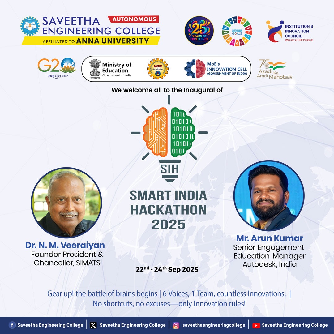 💫 Saveetha Engineering College is proud to host the Internal Smart India Hackathon (SIH) 2025