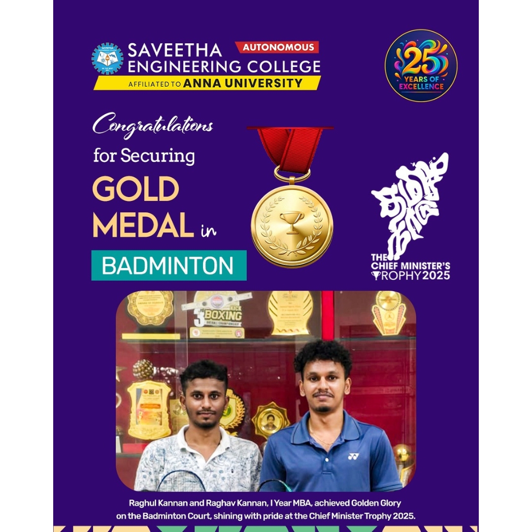 🏅 A proud moment for Saveetha Engineering College (Autonomous) as Ragul Kannan and Raghav Kannan,