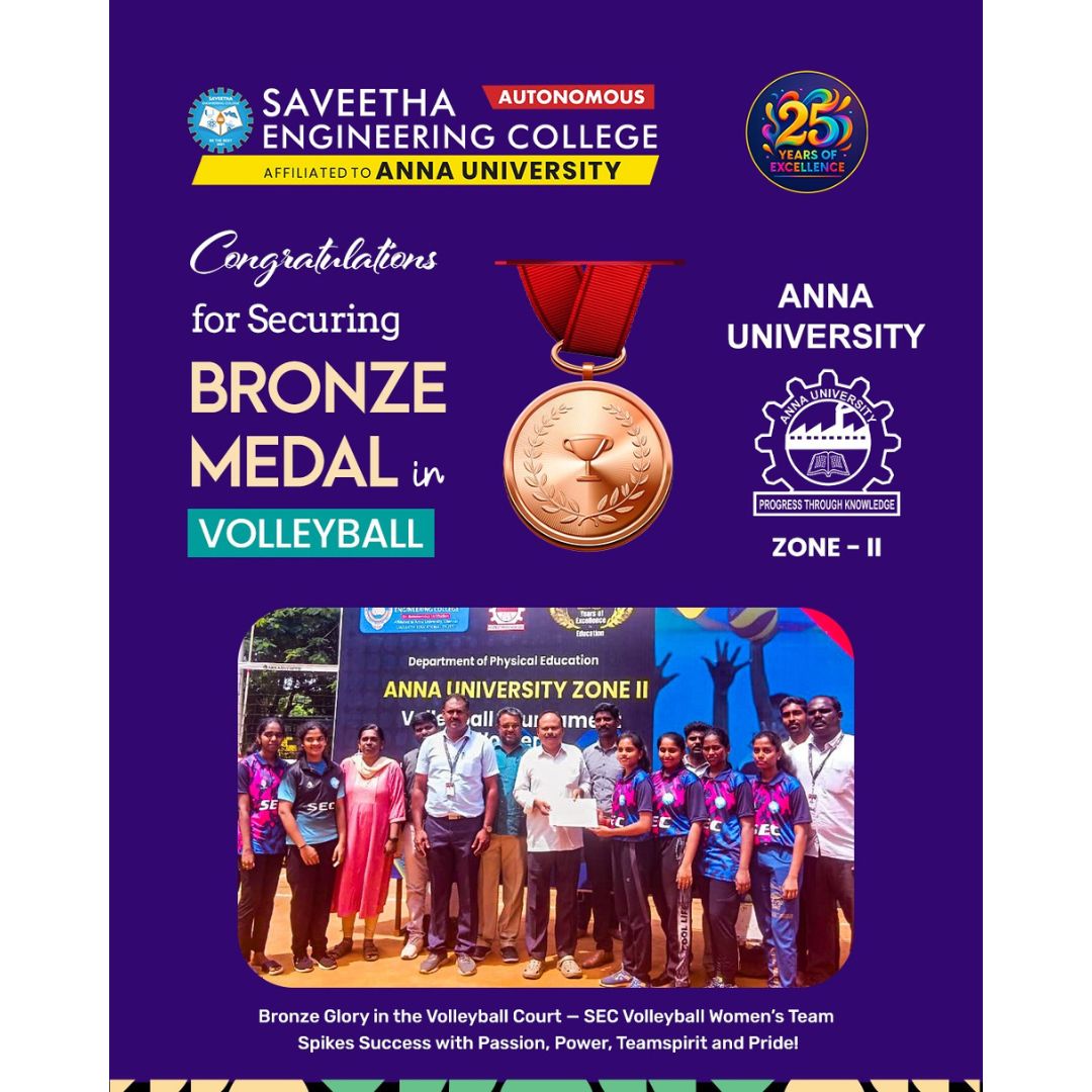 🏐 SEC Volleyball Women’s Team secures Bronze Medal at the Anna University Zone-II Volleyball Tournament.