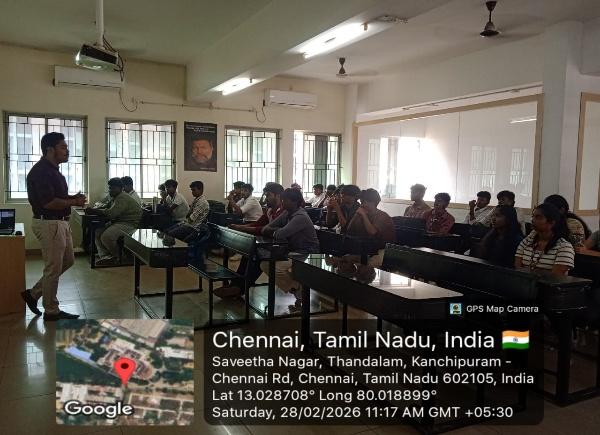 A seminar on ‘Smart Construction Tools: Linear Project Scheduling and Digital Quantity Estimation’ was organized by the Department of Civil Engineering on 28.02.2026. The resource person for the seminar was Thiruvikraman. B.E, Professional Service Consultant, INFINITY PMC SOLUTIONS PVT LTD. The guest highlighted the transformative potential of Smart Construction Tools, particularly Linear Project Scheduling and Digital Quantity Estimation, in modern construction management. They explained how these tools enhance planning accuracy, streamline cost estimation, reduce errors, and improve overall project efficiency and decision-making.