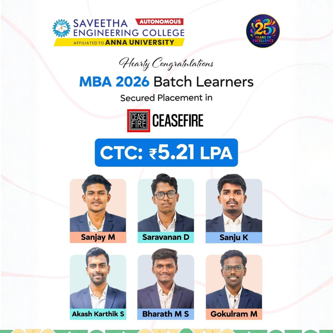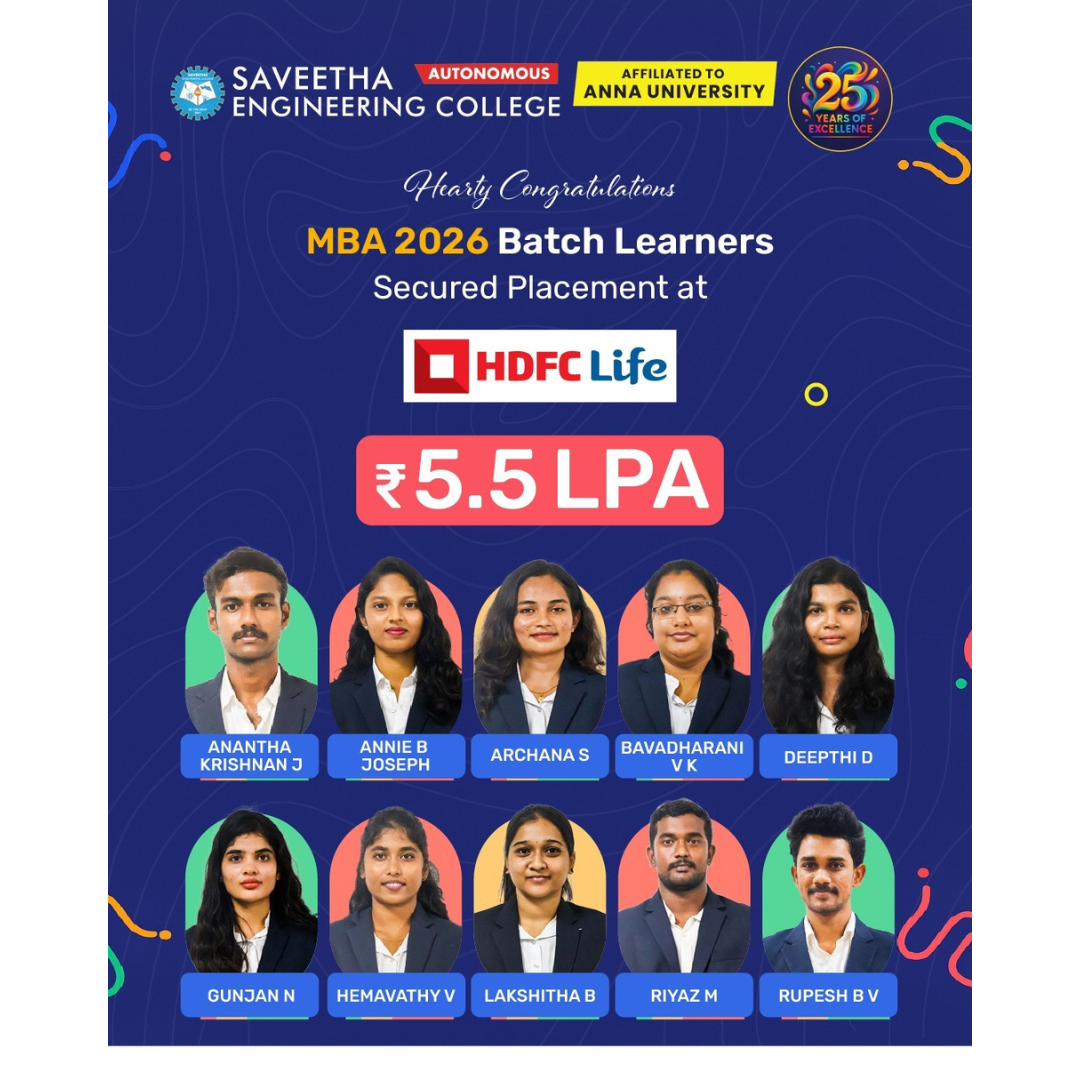 🎉 A proud milestone for Saveetha Engineering College as our MBA 2026 Batch Learners step into successful careers at HDFC Life with a ₹5.5 LPA Package , reflecting SEC’s excellence in nurturing industry-ready management leaders. 🏠💰 HDFC Life is a …