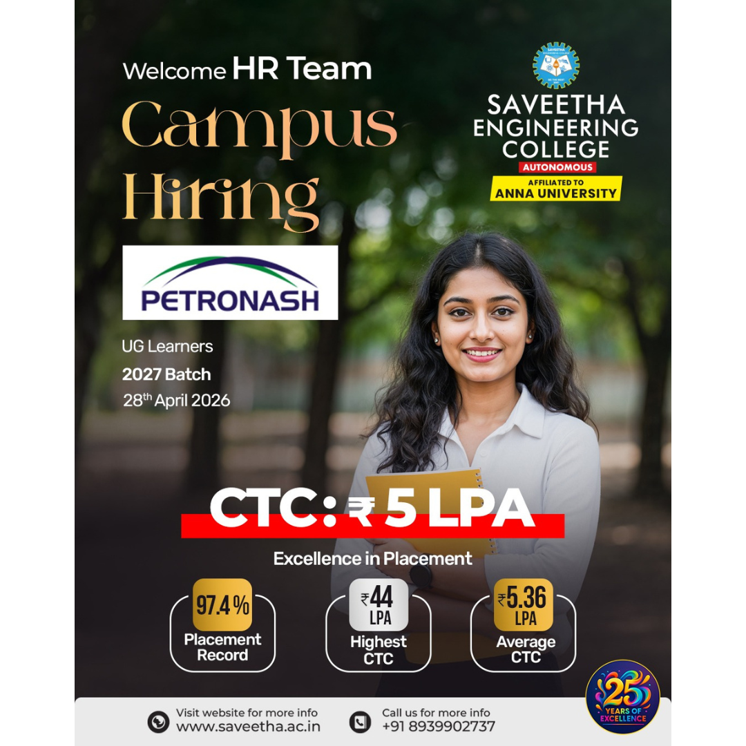 🎉 Saveetha Engineering College (Autonomous) proudly welcomes ” Valeo” for an exclusive MBA – Campus Hiring Drive for the 2026 Batch. 🌟 “Valeo” is a global leader in automotive technology, specialising in smart mobility, electrification, and safety solutions, with a …