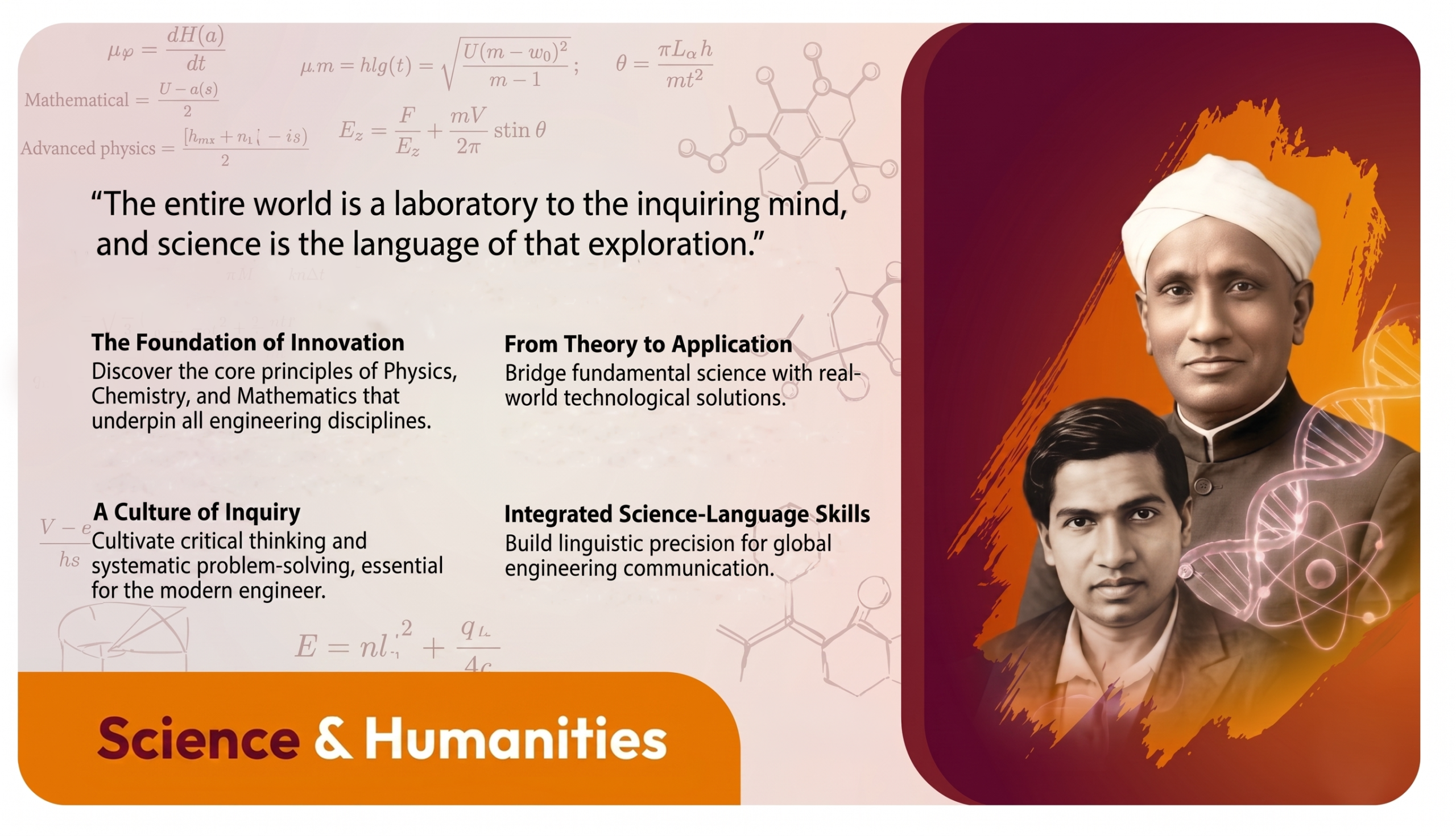 Founded in 2001, the Department of Science and Humanities has evolved into a premier centre for academic growth. We provide the essential foundation in science and language that every engineer needs to succeed in today's rapidly changing world.